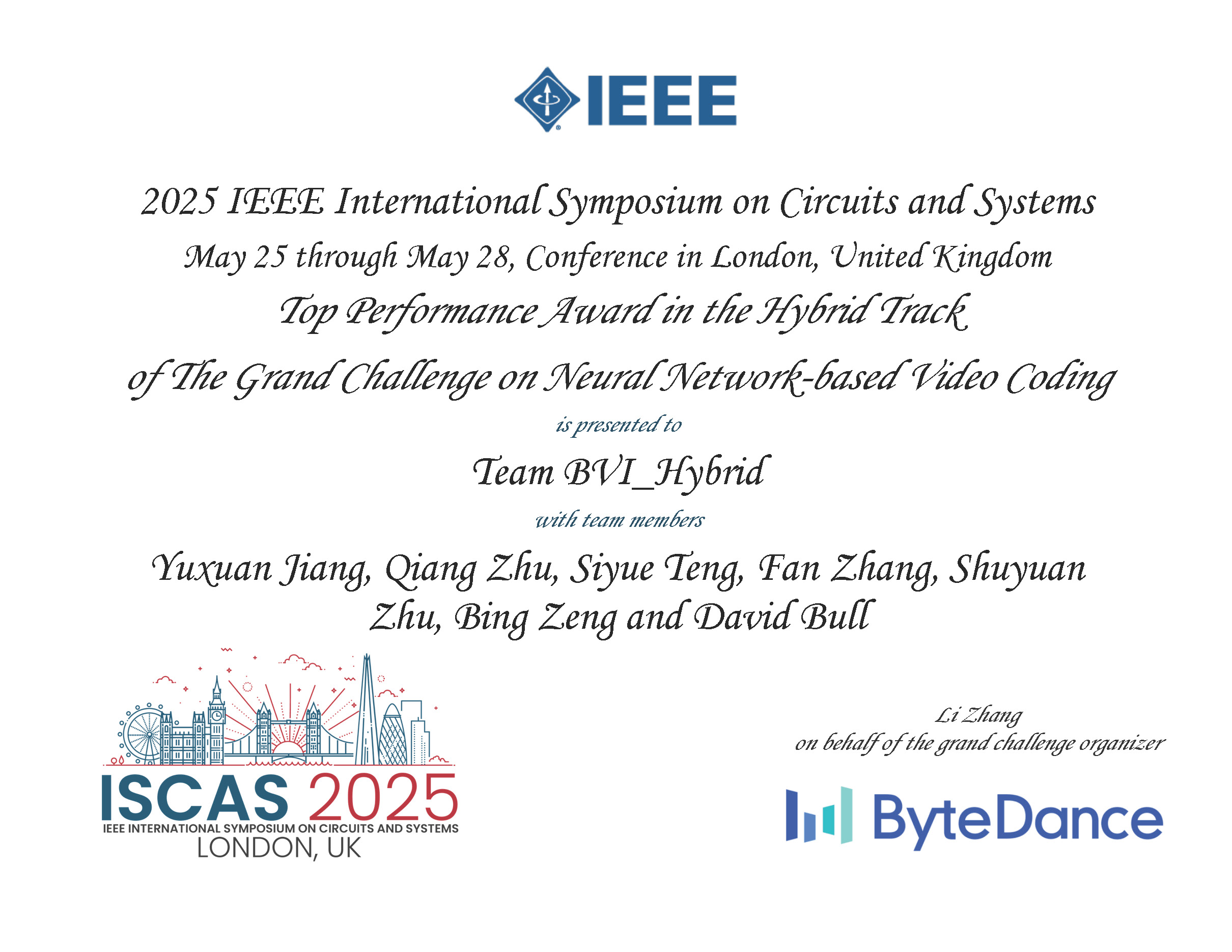| May 2025 | First Prize in the NNVC GC in ISCAS 2025 [Certificate]. |